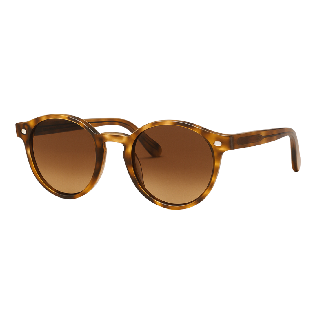 Ultra-light round frame in fine gold wire with amber lenses—subtle vintage energy, all-day comfort.